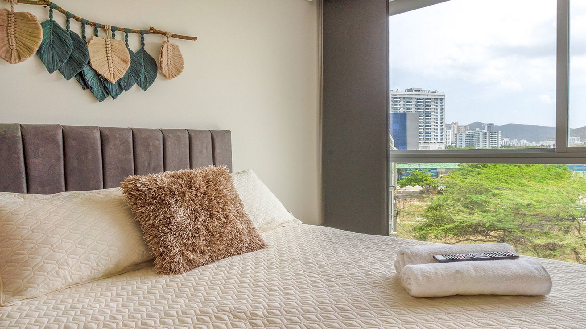 Apartasuite con cama doble, cama abatible doble y cama auxiliar tipo nido, con capacidad máxima para 4 personas. Cocina completamente equipada, ubicada en una zona tranquila del sector Playa Salguero, a solo 5 minutos en carro del Rodadero, 15 minutos del centro histórico de Santa Marta y del aeropuerto. En la apartasuite 313 de Suites Plaza Colombia en Playa Salguero, podrá disfrutar de piscinas con vista al mar, gimnasio, salón de juegos y parque infantil.